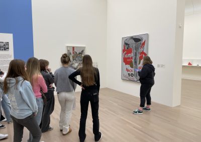 Und wie war es? Hier einige Kommentare: „Ein Kunstmuseum habe ich noch nie besucht!“ „Ich wusste gar nicht, dass es so große Gemälde gibt!“ „Wieso hat die Künstlerin in ihrem Bild den Himmel grün gemalt?“ „Ein Suppendose abmalen und das dann zum Kunstwerk erklären – krass!“ Auf jeden Fall war es ein lohnenswerter Ausflug!